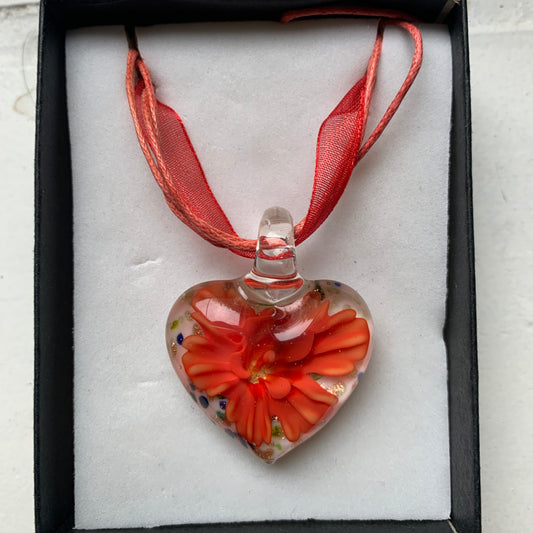 Jenny | Murano glas pendants - Pink floral heart
